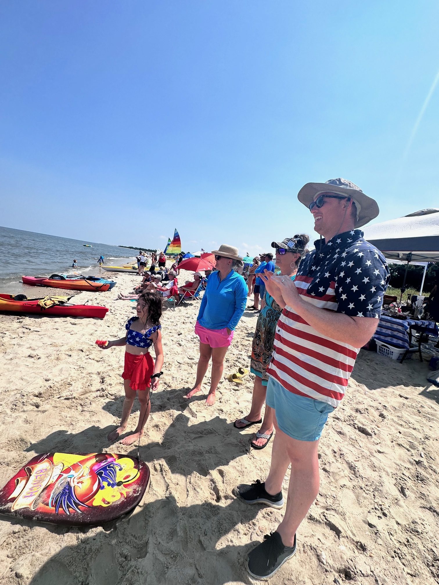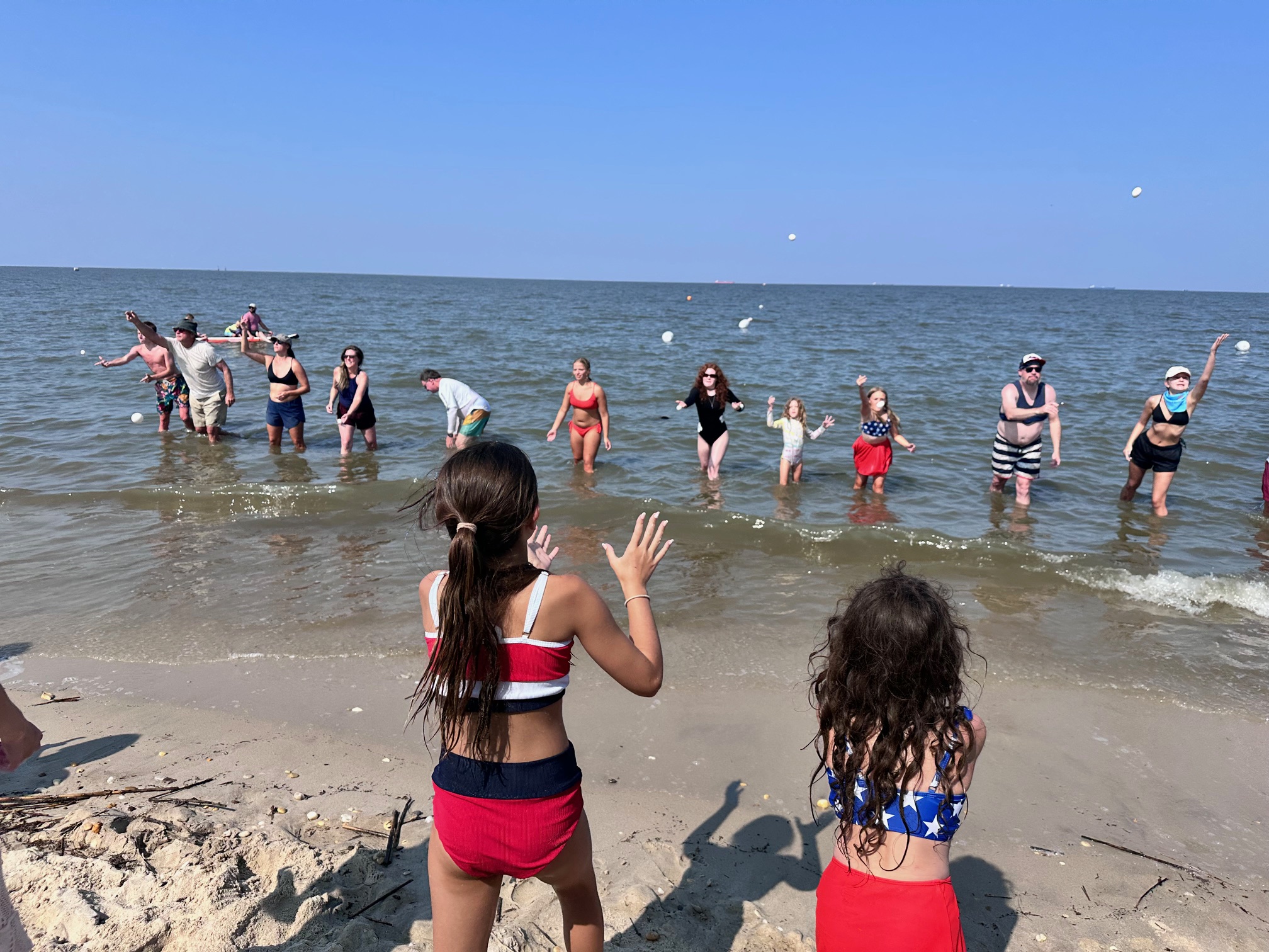- Lastly, the egg toss. What a fun activity this year. The minimal shoreline forced the SBSC Gaming & Rules Layout Technical Team (SBSCGRLTT) to push the field waterward. The move caused numerous entrants to lose their eggs in the surf. What a fun activity that was supported by almost 40 participants! Arja & Julia ended up pulling it out in the end after wading out halfway to the shipping lane to catch the last toss. What a win! Congrats to Arja & Julia!